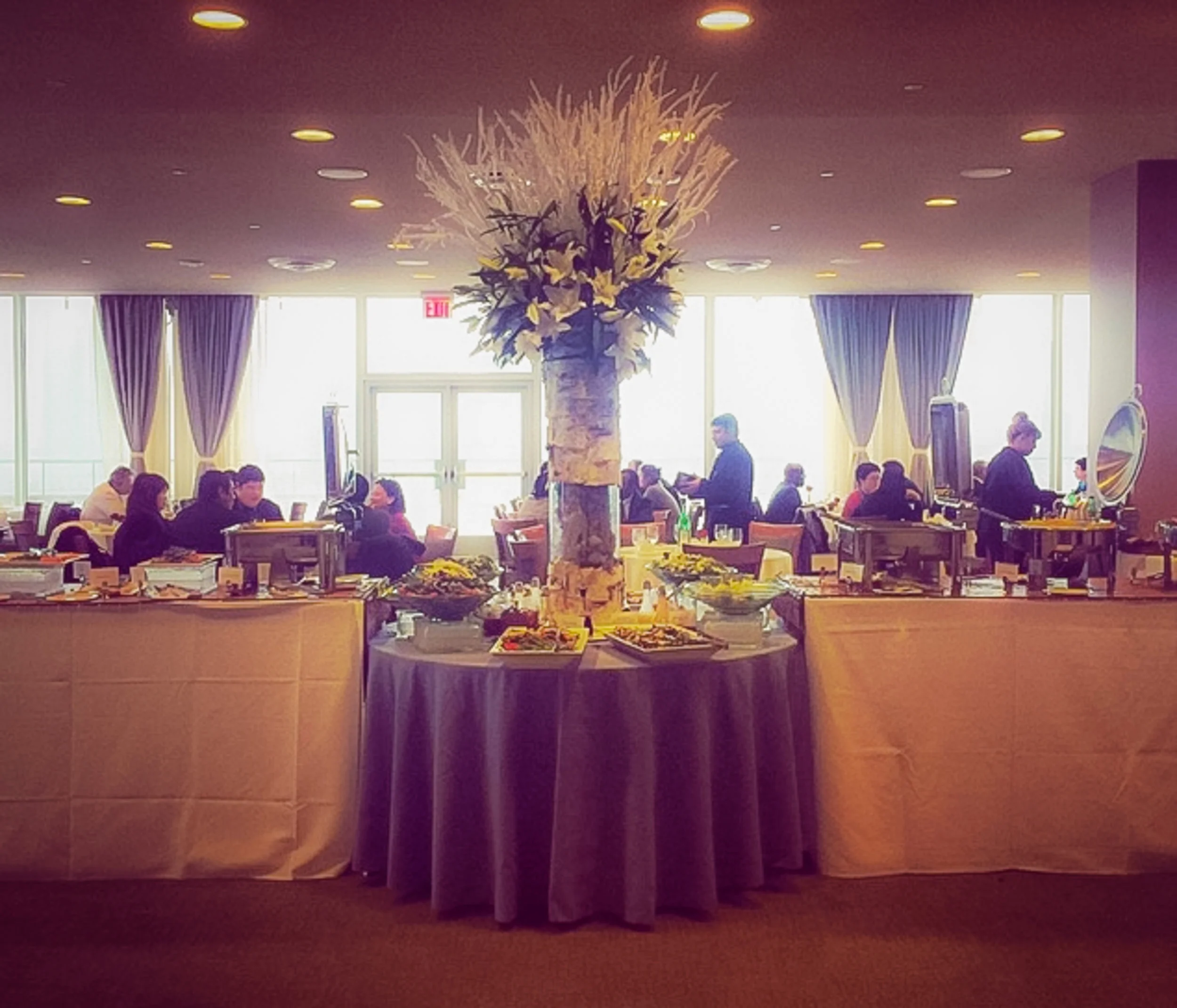 Finally, we emerged from the security labyrinth into the dining room, which was dismal and beautiful.